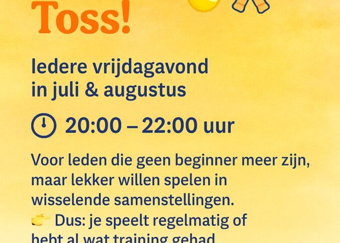 Beste padellers, Tijdens de zomermaanden juli en augustus 2025 zal de padel toss worden gehouden van 10:00 to 12:00 uur. Dit in verband met het warme zomer weer. In een apart bericht aan de junioren van onze vereniging en hun…