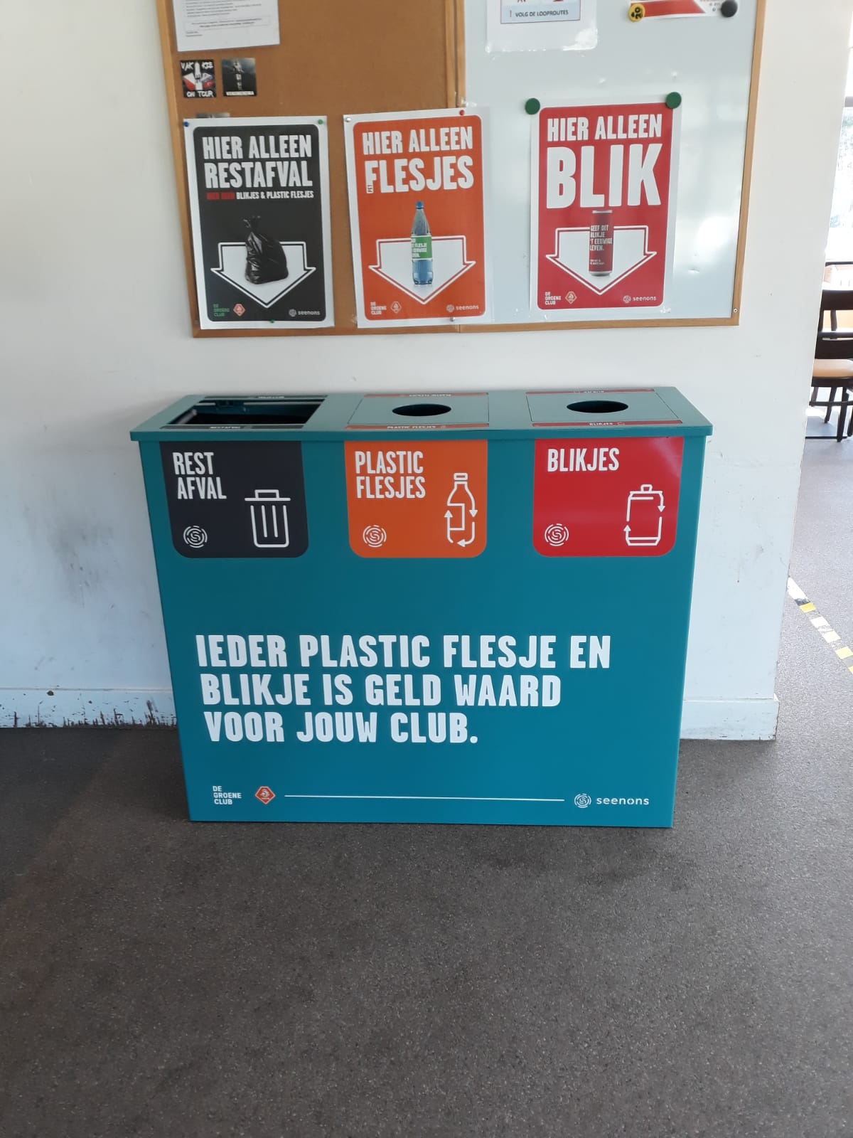 Wij zijn gestart met het gescheiden inzamelen van afval. Deze pilot duurt tot de winterstop en is een initiatief van De Groene Club, opgericht door de KNVB om sportverenigingen te verduurzamen. Het gescheiden inzamelen van afval gaat in samenwerking met Seenons, een afvaldienstverlener gericht op circulariteit.