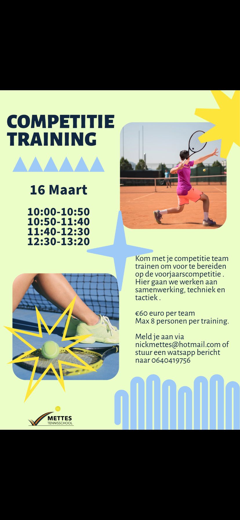 Heb je je ingeschreven voor de voorjaarscompetitie? en wil je samen met je team competitietraining?