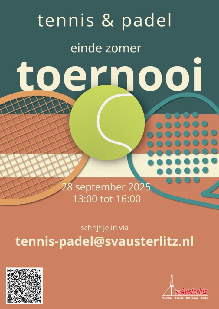 Hoofddoel van de middag is gezelligheid. Tegen 16:00 sluiten we af met een borrel. Doe allemaal mee en schrijf je in via de website tennis-padel@svausterlitz.nl. Dit wil je niet missen!