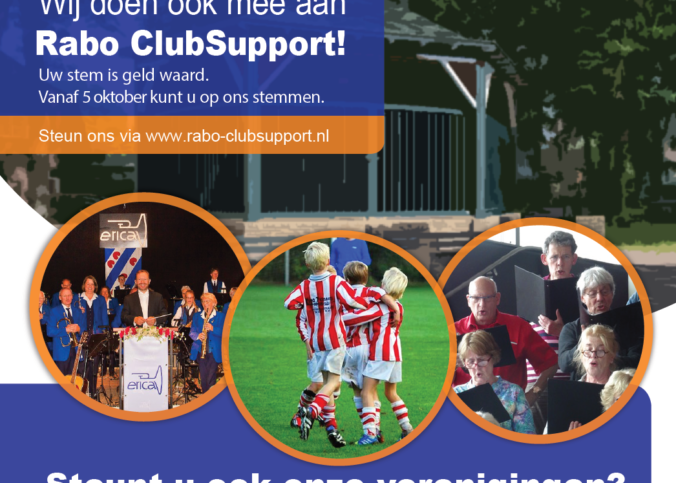 Rabo ClubSupport Jij beslist mee! Met Rabo ClubSupport steunt de Rabobank clubs en verenigingen uit de regio. En wij doen dit jaar ook mee! Zo maken we kans op een mooi bedrag wat onze vereniging en buurt beter en sterker…